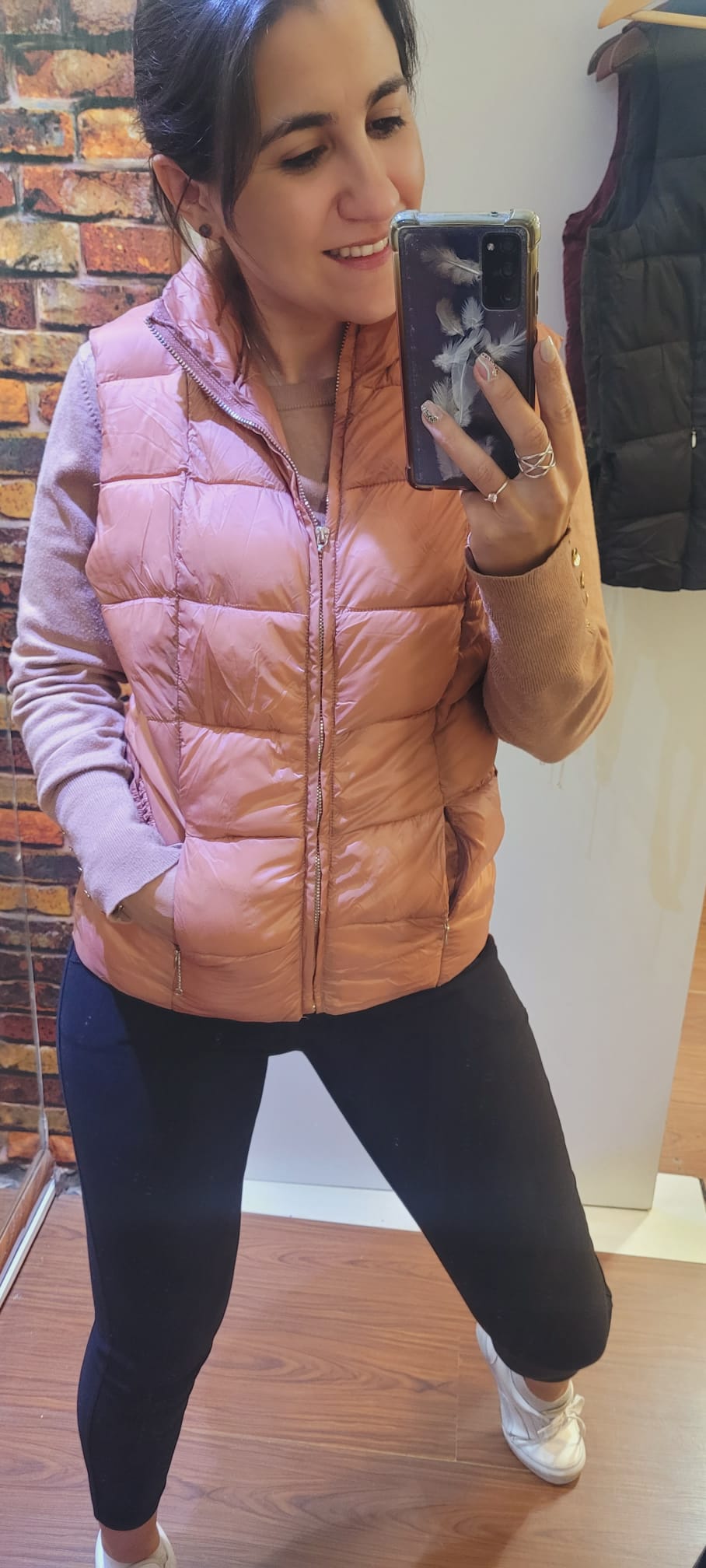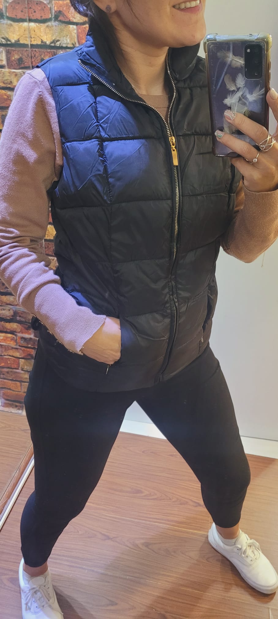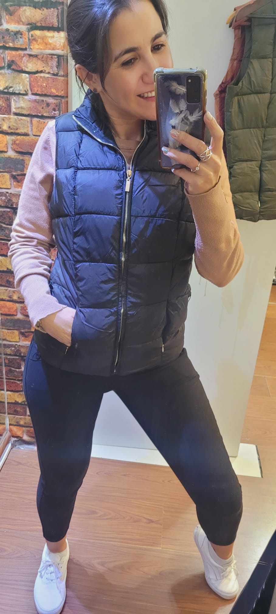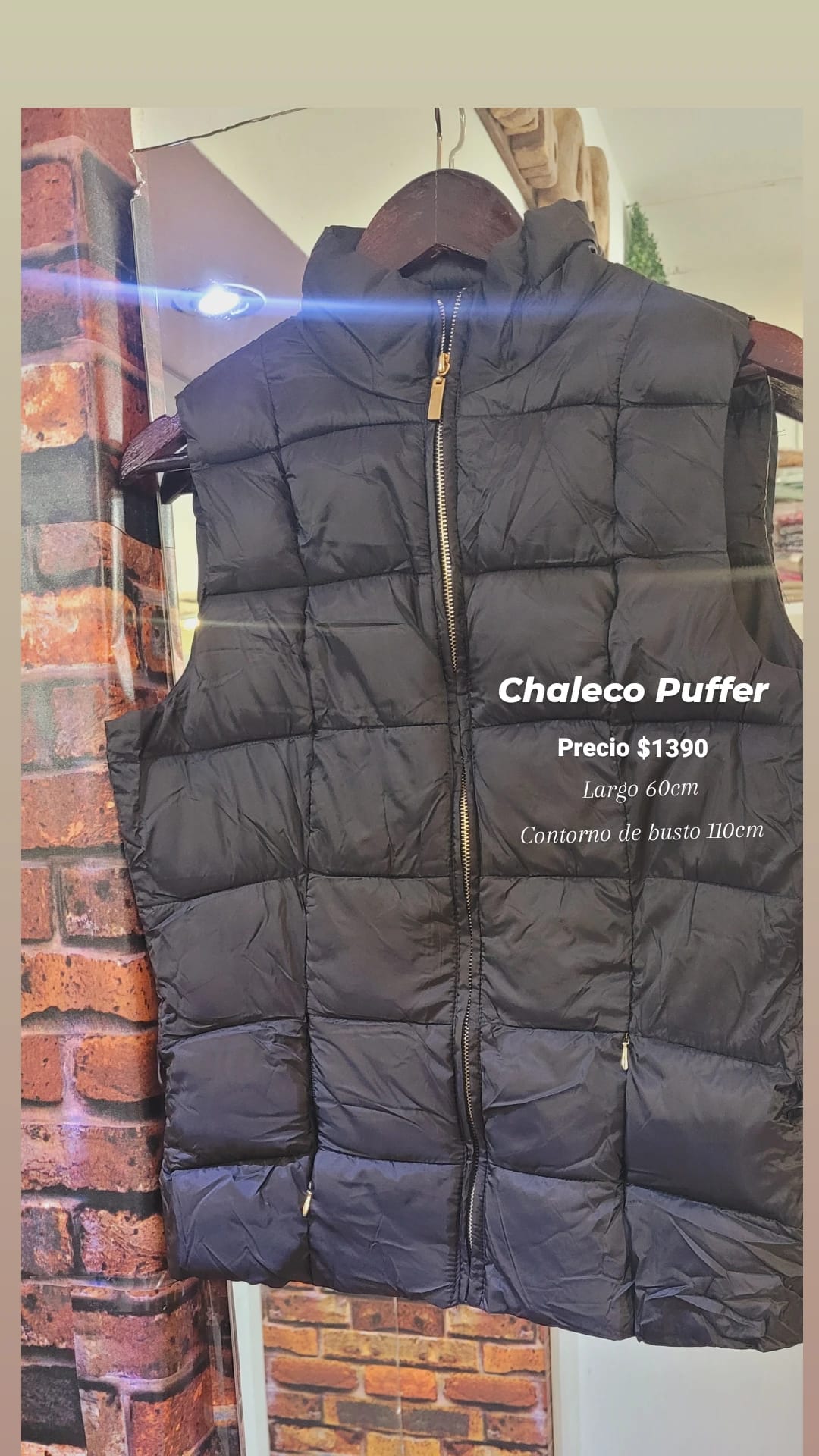 Chaleco Puffer Con Cierre y Bolsillos Talle: único Largo 60cm Contorno de busto 110cm. Colores: Negro- Verde- Bordo- Coral. Precio: $1390