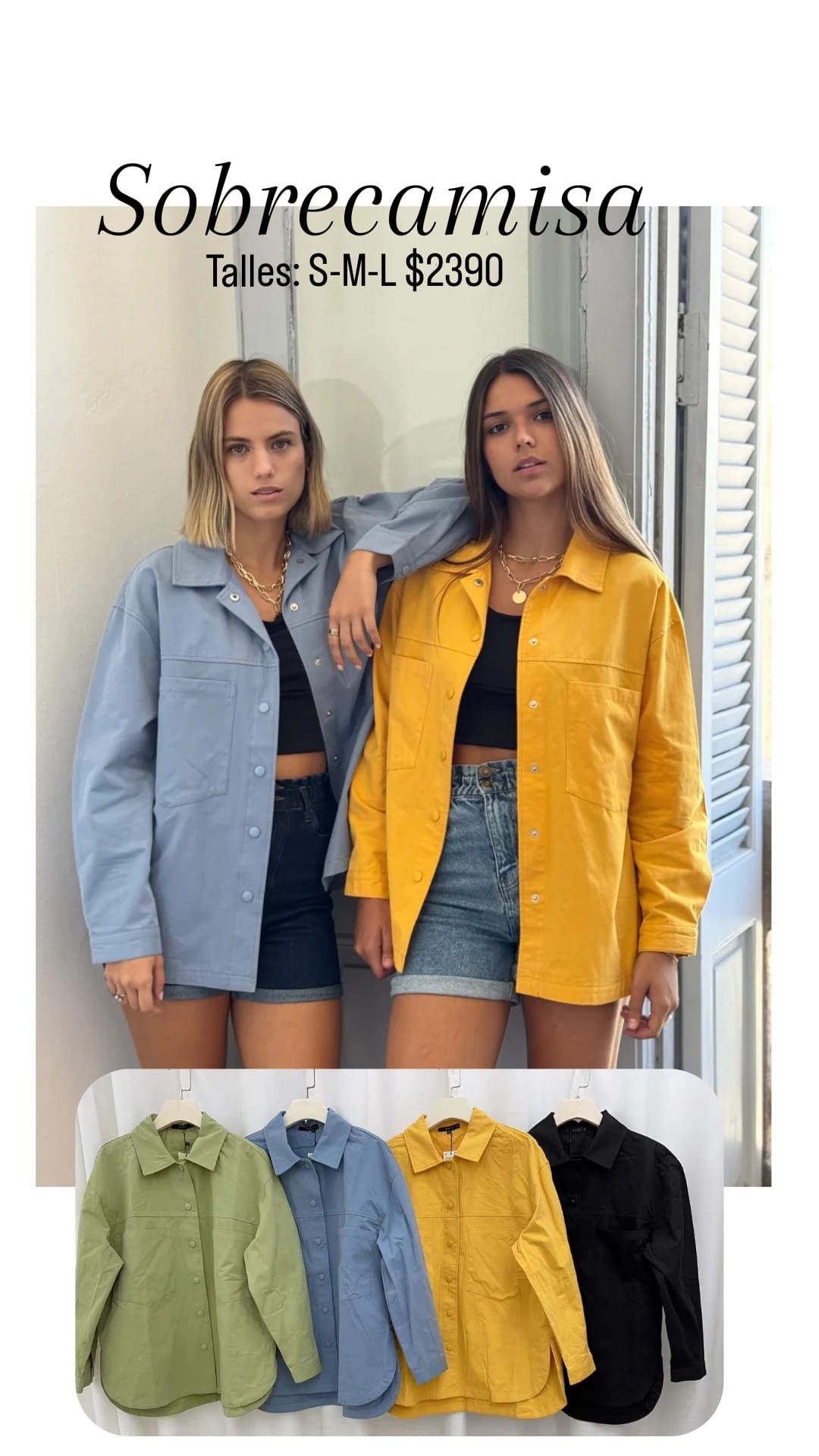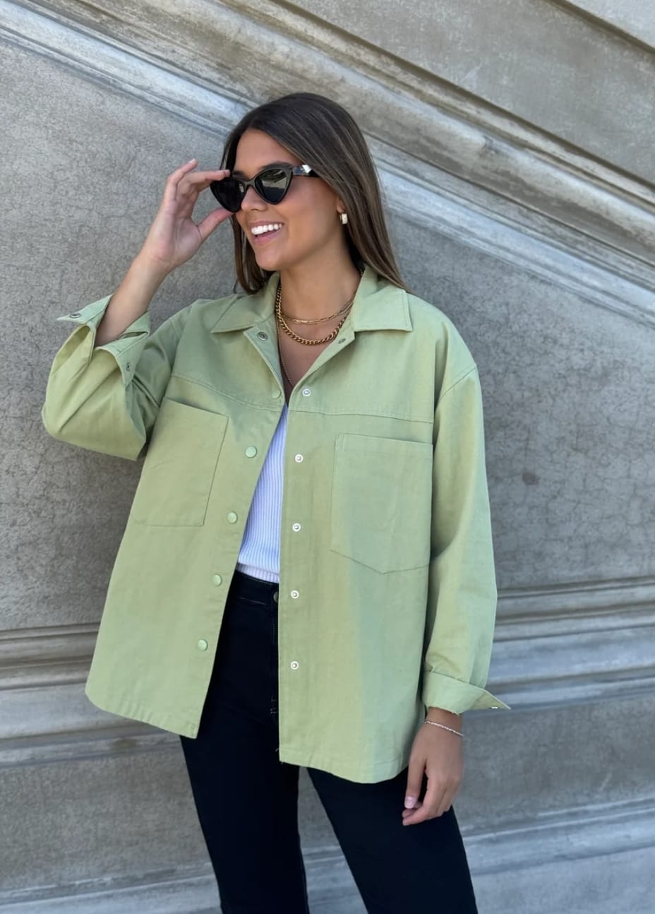 Sobrecamisa LOVE 💞 Con bolsillos, y botones de abrochar. Modelo bien holgado estilo Oversize Talles: S M L Colores: Celeste- Amarilla- Verde- Negro Precio: $2390